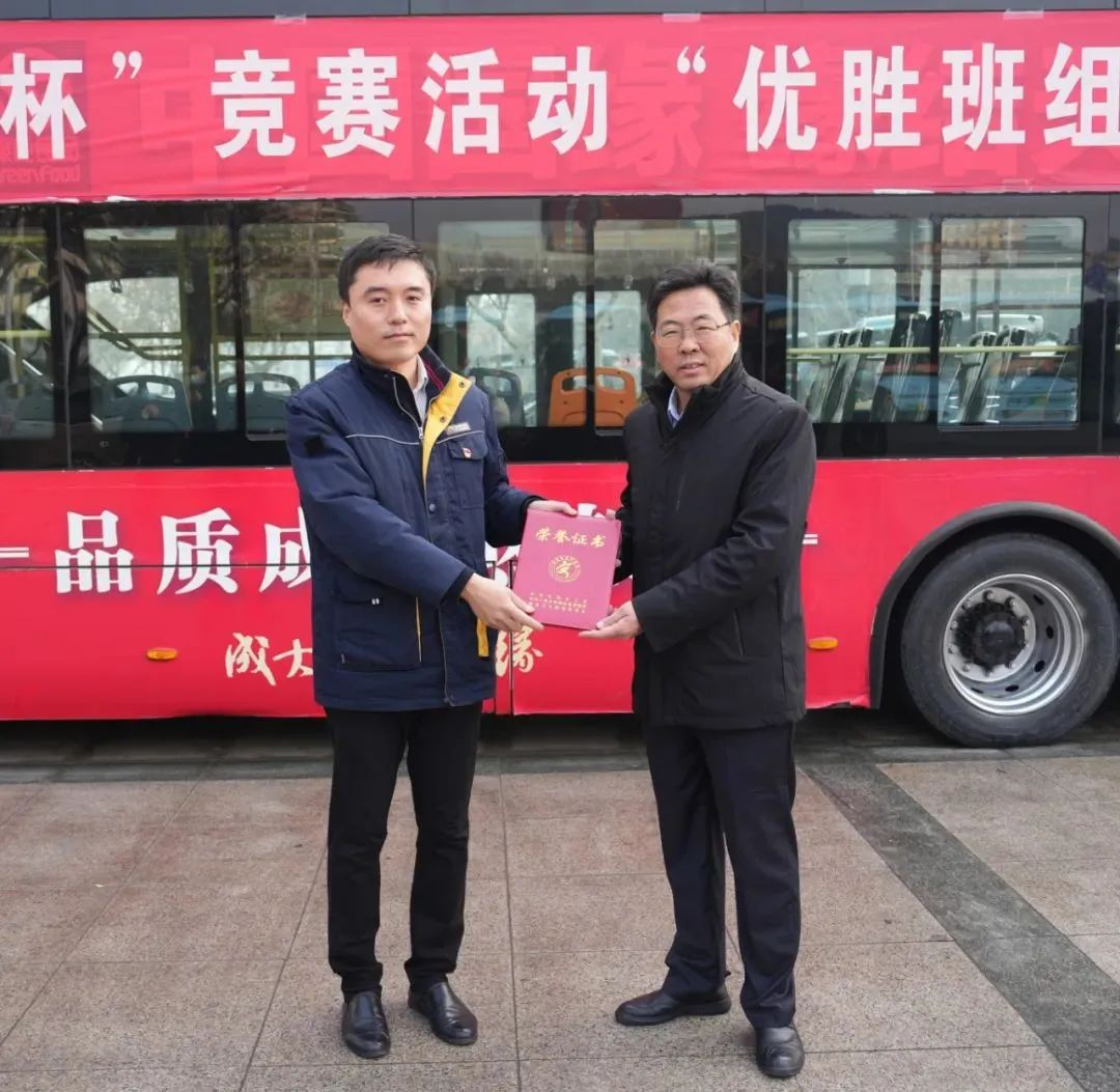 2月7日,江蘇省總工會勞動和經(jīng)濟工作部副部長董雷到徐州公交集團為全國“安康杯”競賽優(yōu)勝班組1路線授牌。市總工會黨組成員、副主席王建民,市總工會勞動和經(jīng)濟工作部部長單昊,市交控集團黨委委員、紀委書記胡濤,市交控集團群眾工作部部長、工會副主席、團委書記周靜及公交集團黨委副書記、紀委書記、工會主席竇同銀陪同參加授牌儀式。
